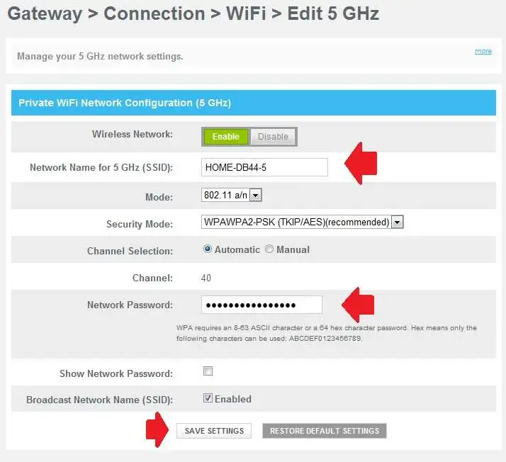 Network Name for 5GH(SSID) – Create a WiFi name for your WiFi network.