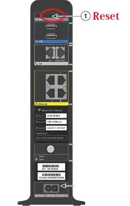- Locate a small reset switch in the Xfinity cable modem or wireless router.