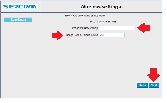 Connect Sercomm Repeater using easy Setup Method