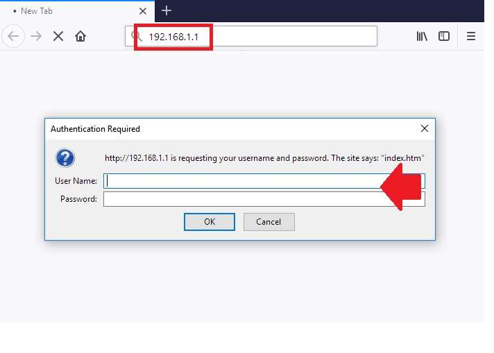 Open a web browser (Google Chrome, Firefox, Edge, Opera) and access http://192.168.1.1 to the URL bar, and wait to load the login page.