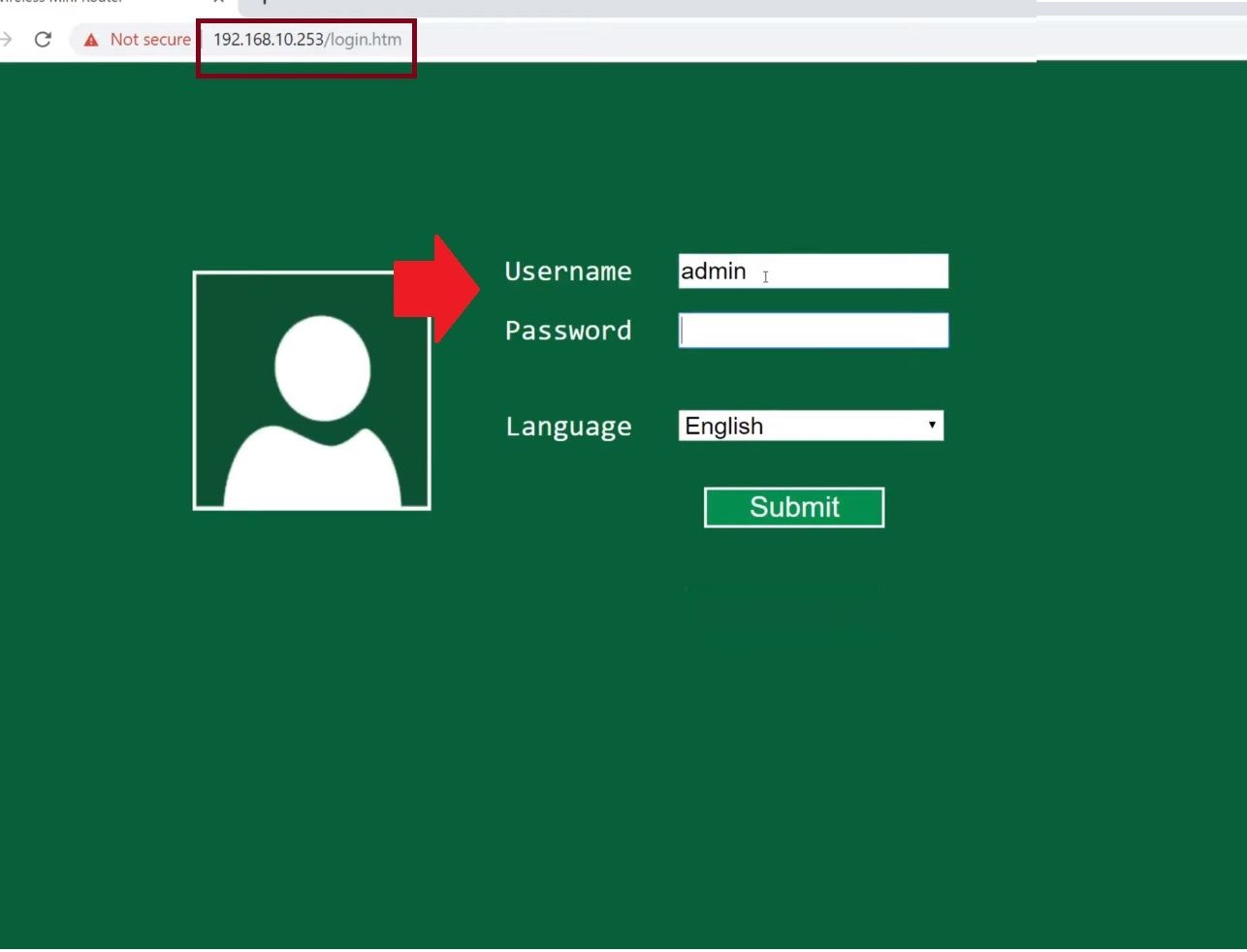 - Open web browser and access http://192.168.10.253 and press enter key.