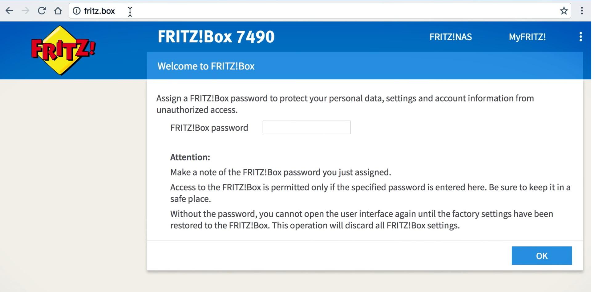 - Open a web browser and access http://192.168.178.1 to the URL bar and wait to load the router page.