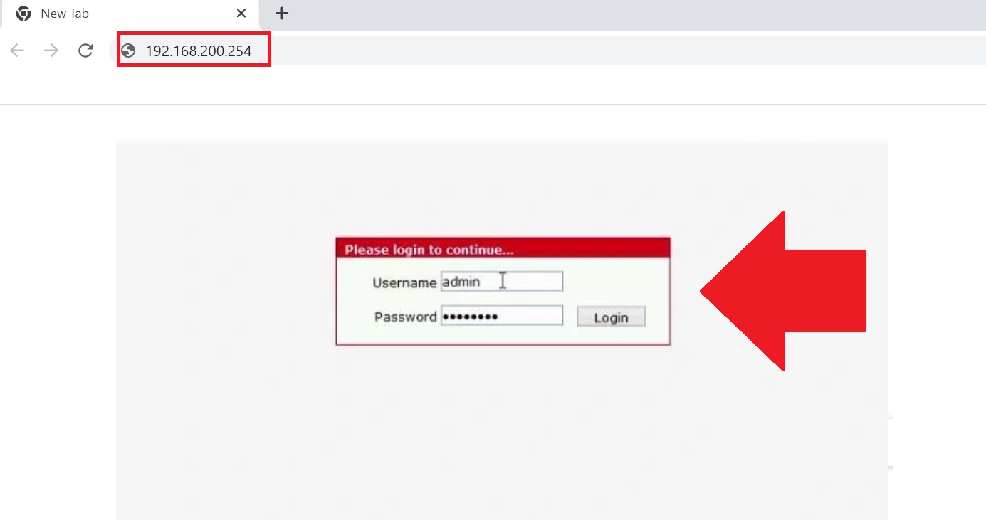 - Open the web browser and access 192.168.200.254 or http://192.168.200.254 to the URL bar and wait until the login page loading.