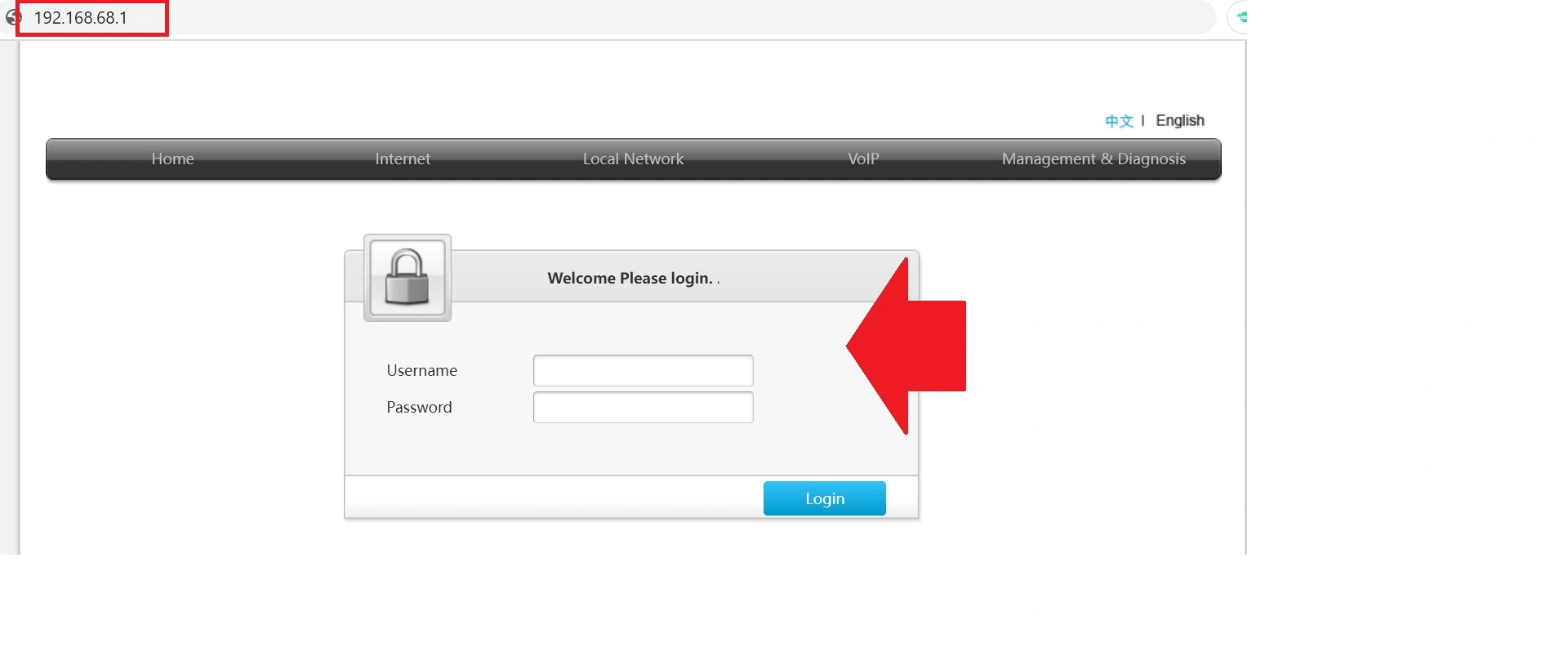 - Open the web browser and access http://192.168.68.1 from the URL bar.