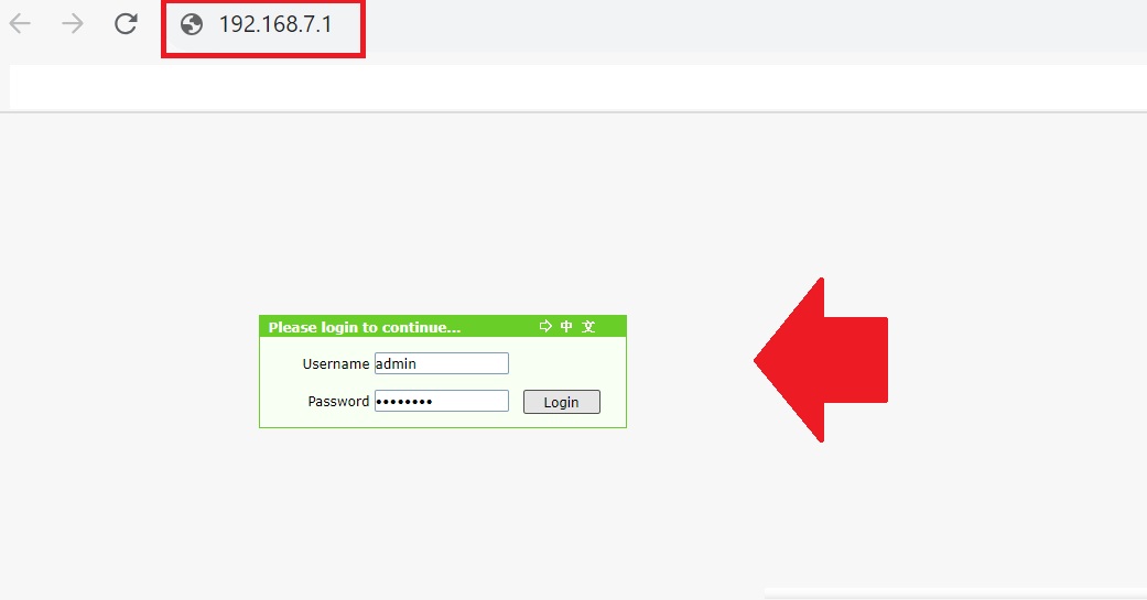 - Open a web browser and access http://192.168.7.1 or just 192.168.7.1 and wait until the router login page loading.