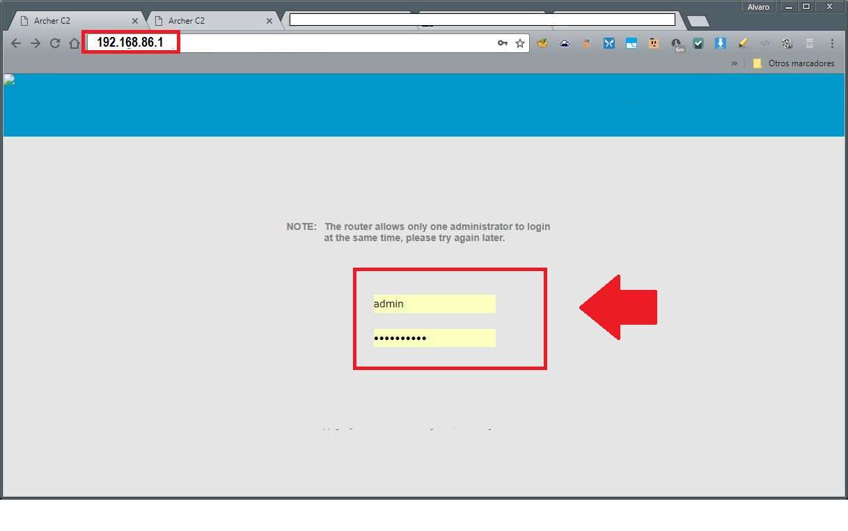 - Open a web browser and access http://192.168.86.1 and you will get the router login page.