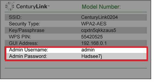 Note: Admin Username and Admin password might differ for each centurlink router model so make sure you get login credential as printed to router sticker.