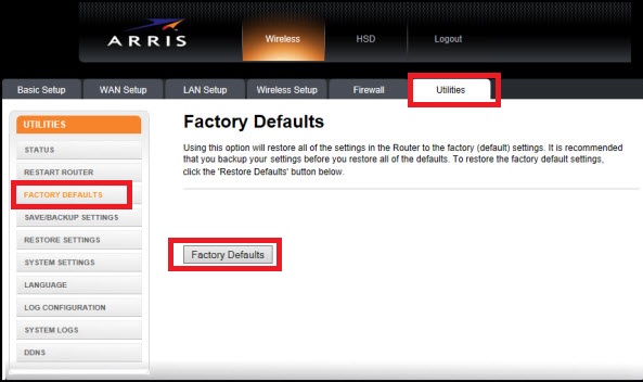 1: Arris Modem Reset from Web interface (Soft reset)