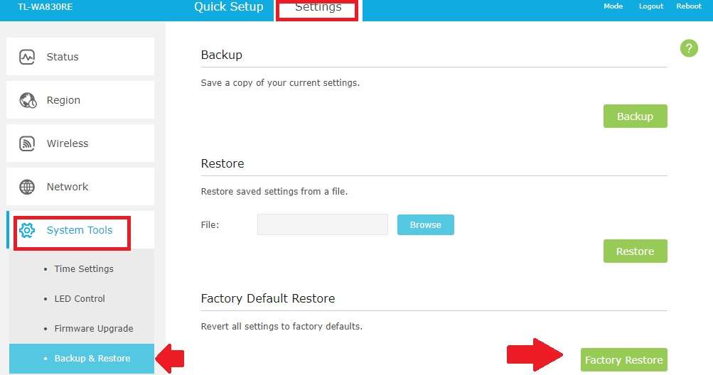 Factory reset TP-link Wi-Fi extender from Software