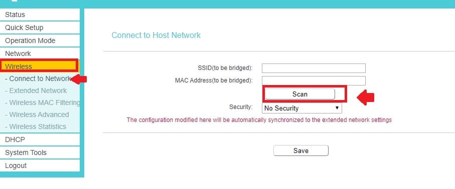 Go to Wireless- Extended Network