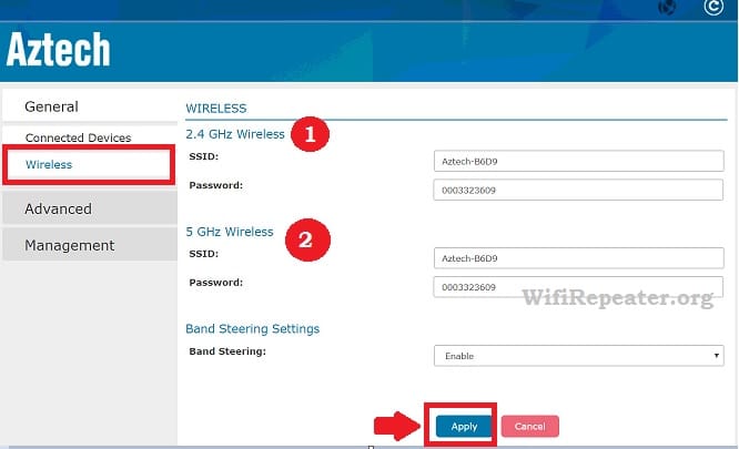 Change WiFi Name and Password Aztech AC1200
