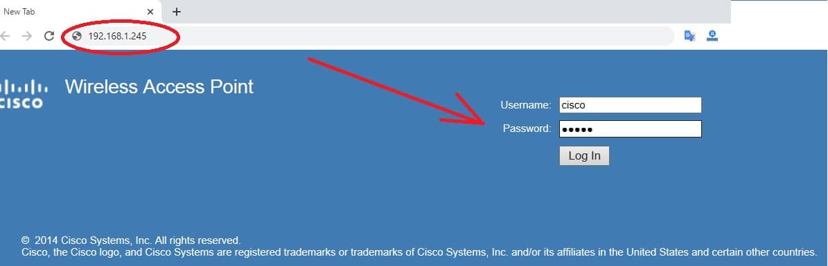 Type cisco wap121 default IP address http://192.168.1.245 to the URL bar and press the enter key.