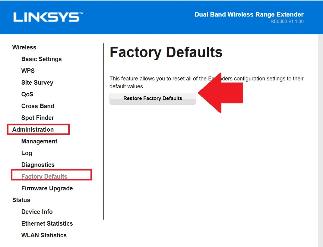 Making Linksys wifi signal booster restores the device to its default mode and needs to set up again. There are two ways to reset Linksys re6400 as well as other Linksys wifi extender devices if it’s not working properly and you want a factory reset. The first way to reset the Linksys repeater device is from the web interface after login from a mobile or computer.