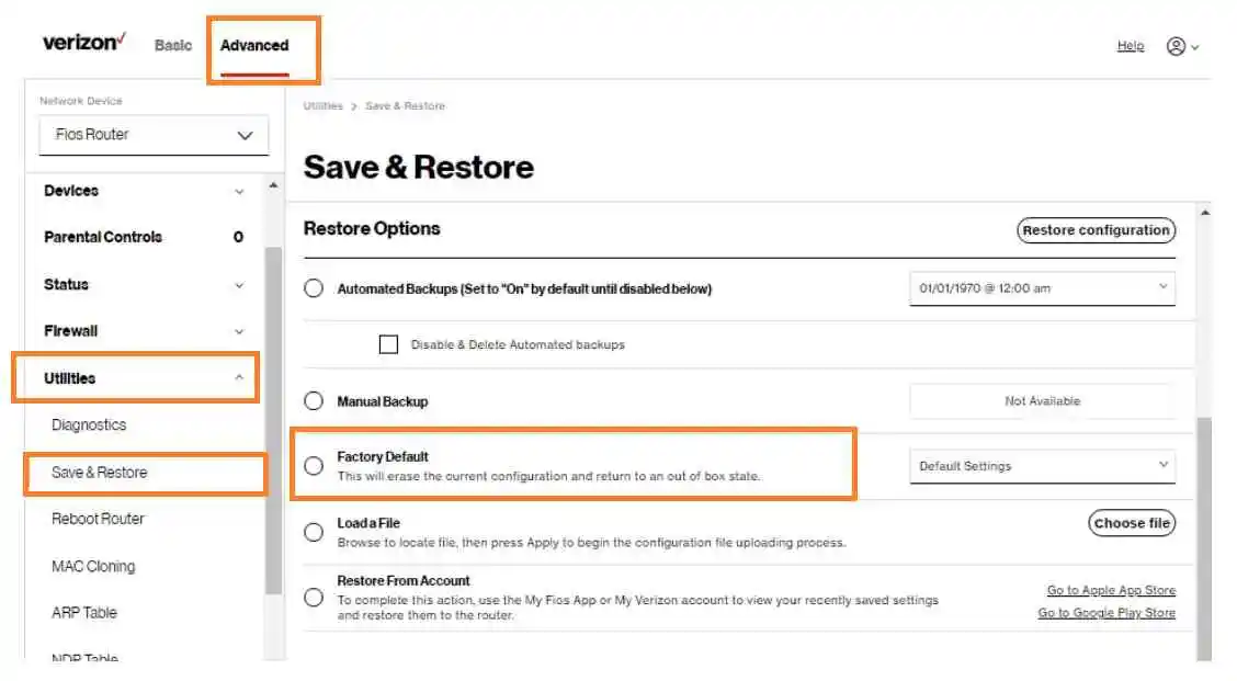 After resetting restore the configuration backup file if you downloaded it before or you can manually set up your router as per your internet type from Static IP, PPPoE or DHCP. Get internet WAN settings details from your internet provider or you can also contact the Verizon support Center to get help if you are not able to set it up again.