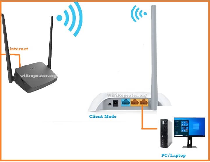You can recycle an old spare router as client mode to work as a WLAN adapter. WiFi router supports client mode to receive internet wirelessly from WiFi router. You can use client mode to connect a desktop computer, Network DVR, Network printer, and IP camera to the internet without laying physical cable from an internet router. Just log in to the router and change client mode to connect wirelessly to the main host wifi network. Once the old router is connected to the wifi network using client mode just plug LAN cable into the PC, DVR, IP camera, or any other device you can to connect to the internet.