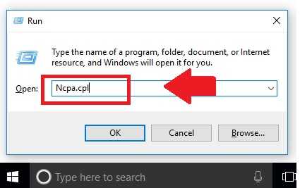 Type the command “Ncpa.cpl” and click the OK button.