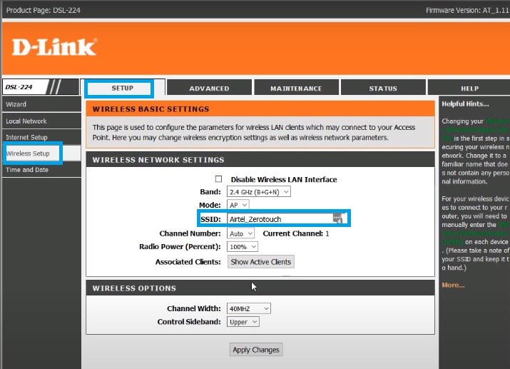 Go to Setup-Wireless Setup