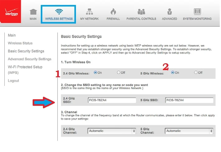 2.4 GHz SSID name- FIOS-T6ZA4 (change WiFi name as per your choice for 2.4GHz network)
