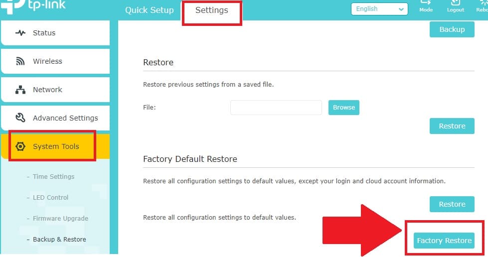To factory reset Login Repeater device with the default IP address as given above steps.