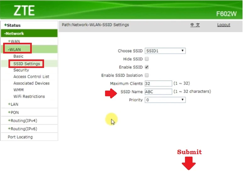 If you want to use the ZTE ONT device as a wifi access point or you may want to change the ZTE Wi-FI SSID name and password then follow the steps below.