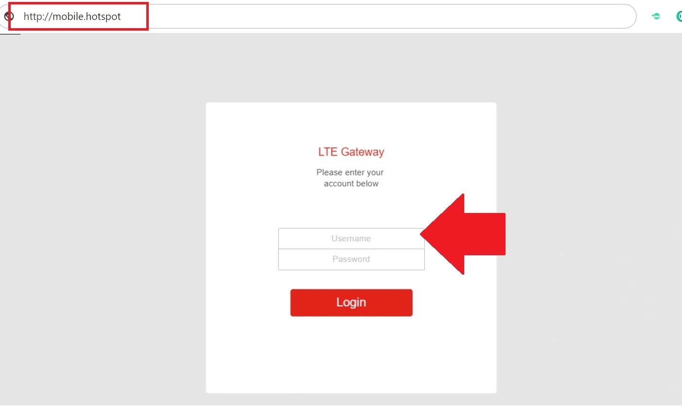 - Open the browser and access http://mobile.hotspot or Login IP address http://192.168.1.1 or if different model use 192.168.0.1