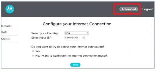 - Open a web browser and access Motorola modem login IP 192.168.0.1 or 192.168.100.1 that depends on the modem model number.
