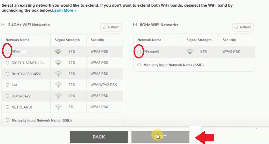 - An extender will scan for the network and give you the list of all wifi running nearby.