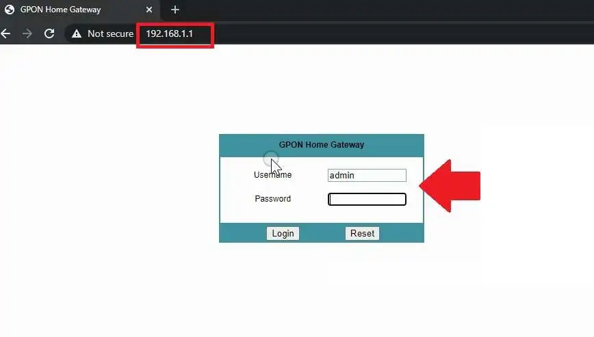 After physical connection and network configuration open a web browser and access http://192.168.1.1 and wait to load the ONT login page.