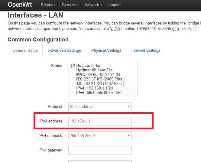 As most of the router comes with a default IP Address http://192.168.l.l so before setup OpenWRT router it is highly recommended to change LAN IP.