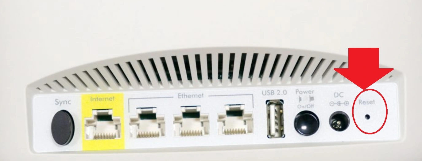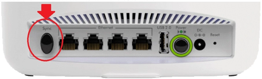 - Find a sync button on Orbi Satellite beside Ethernet ports.