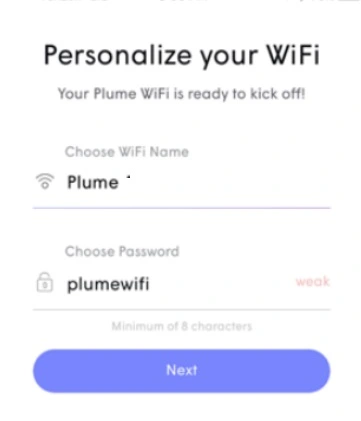 Choose a password– create a WiFi password for your Plume wifi network.