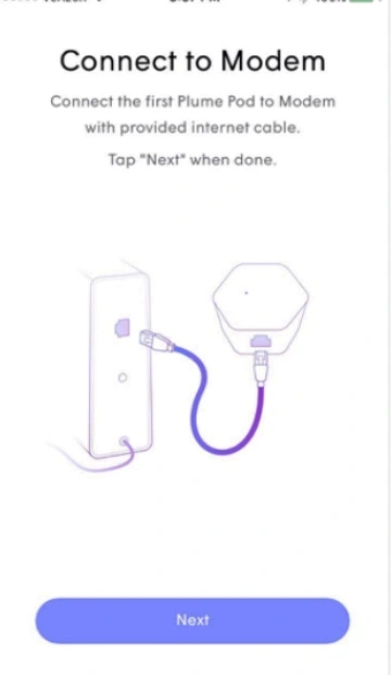Now connect the Plume Pod using to Ethernet cable that comes with the unit to Modem Ethernet Ports.