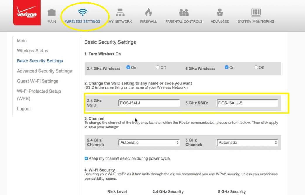 Go to the Wireless Settings tab from the FIOS settings menu as shown below image.