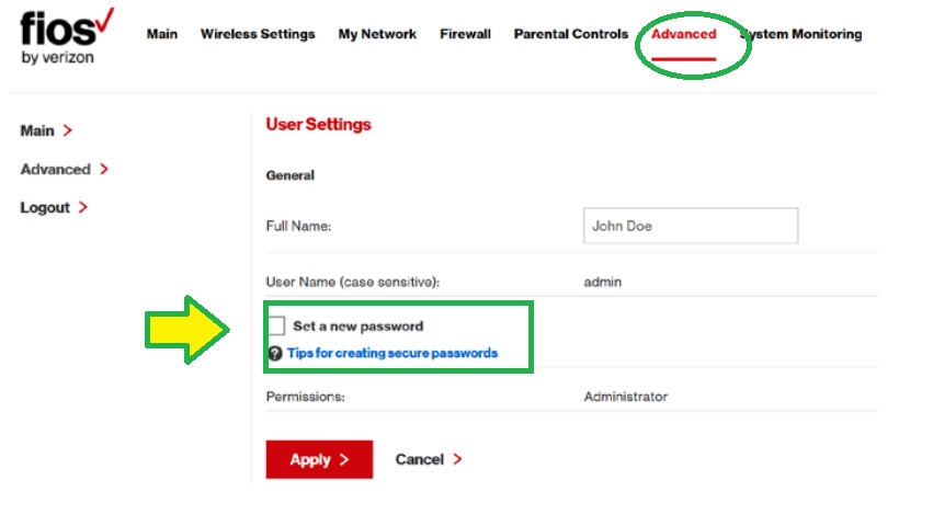 - Open a web browser and access FIOS login IP address http://192.168.1.1 or FIOS login URL http:// com