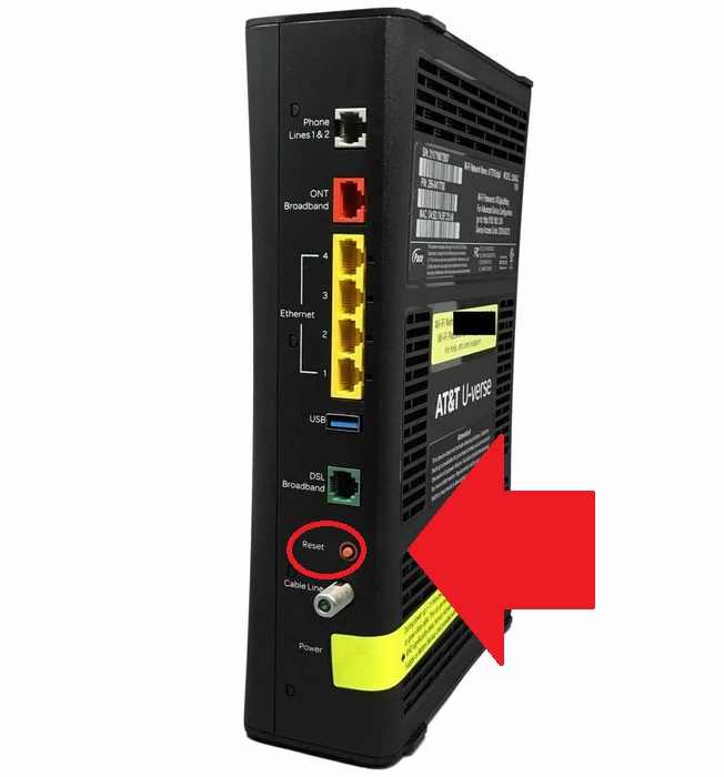 - Use a needle or paper clip to reset the Att router using the reset button.