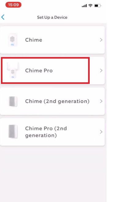 - After login to the Ring account go to set up a new device and select chimes.