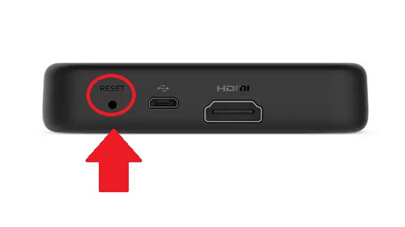 - Press and hold the reset button for 10 seconds and wait until the Roku device automatically restarts.