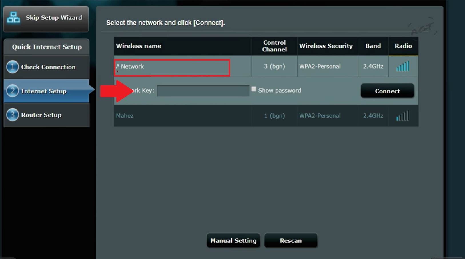 - Choose your existing WifI network SSID from the list and provide the WIFI security key for your old wifi network.