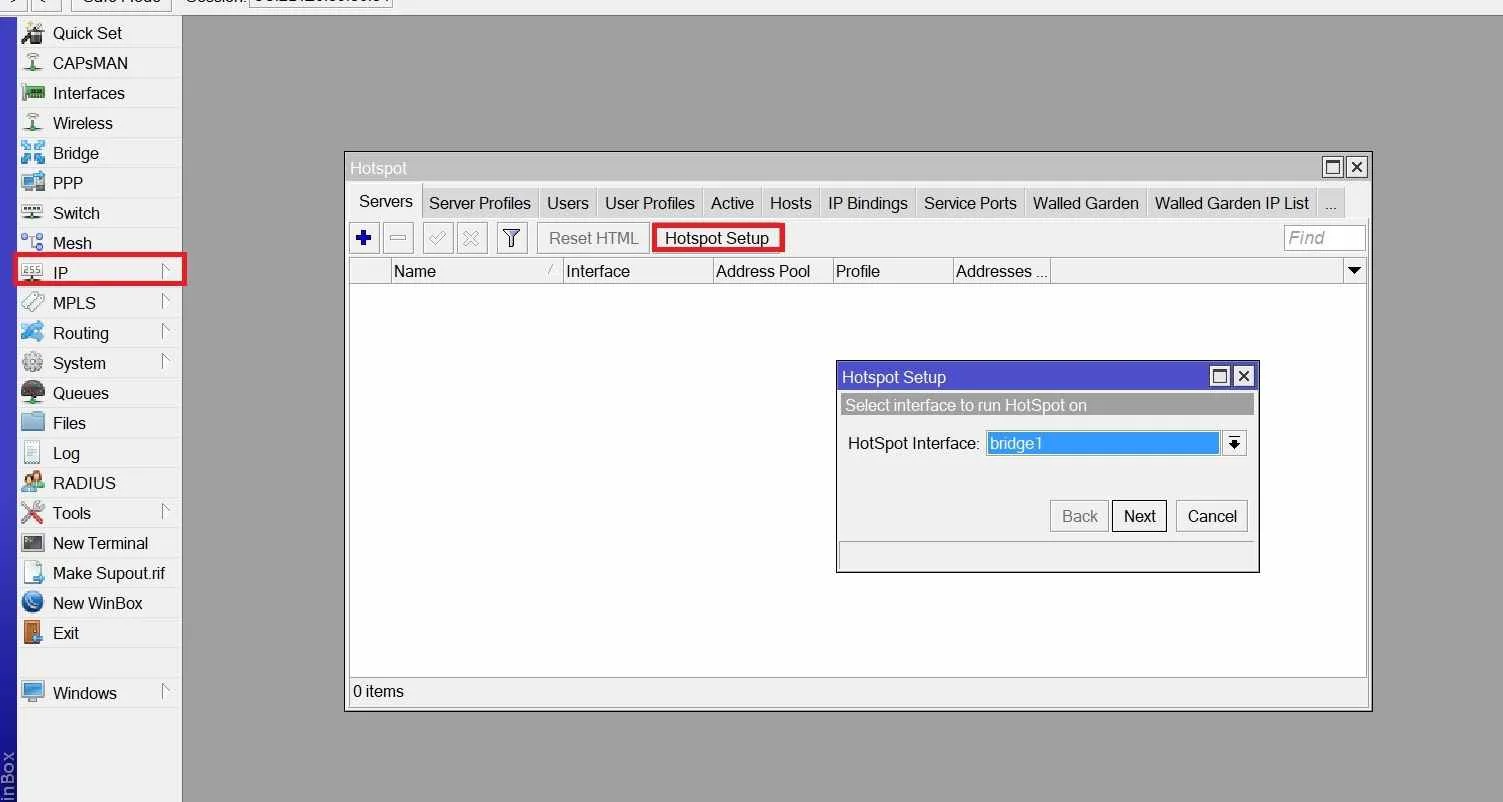 You have to connect a wired LAN connection from router LAN port to Pc/Laptop to access the login page using inbox as well as from web browser. There are a few steps from login to Setup Hotspot in MikroTik Routerboard.