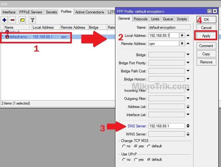 MikroTik VPN setup for remote access of router finish now test the VPN configuration.