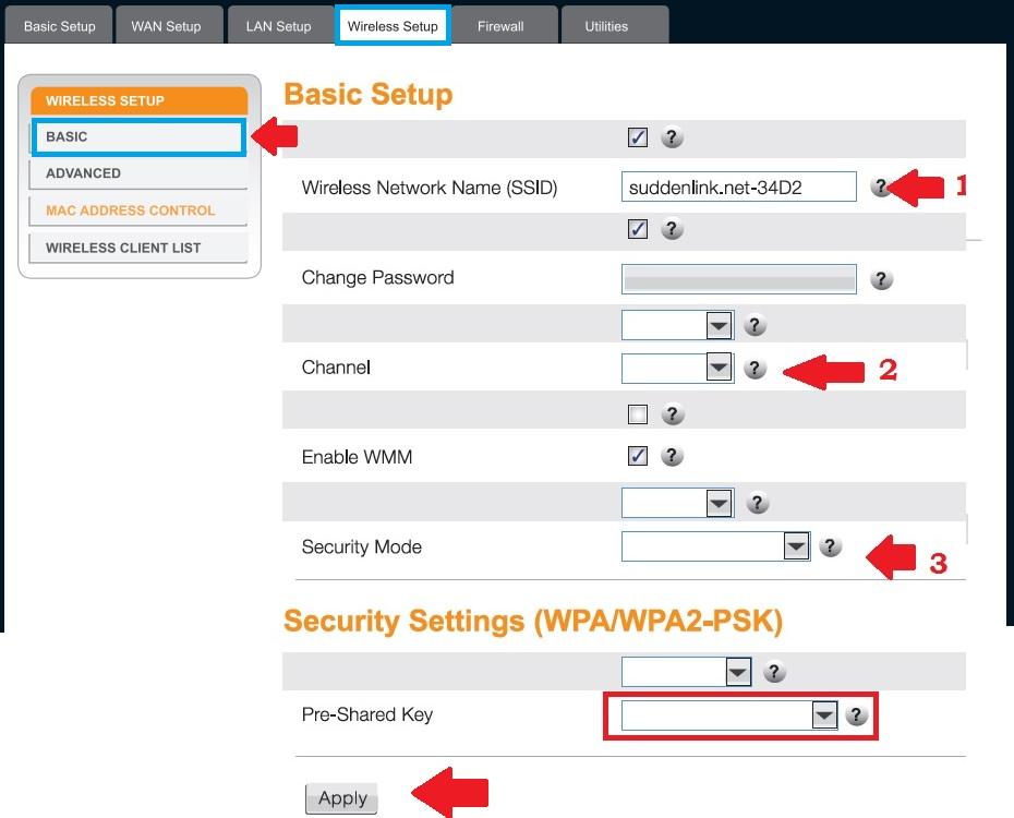 Pre-shared key– Suddenlink wifi password (set a new strong password for your Suddenlink wifi network)