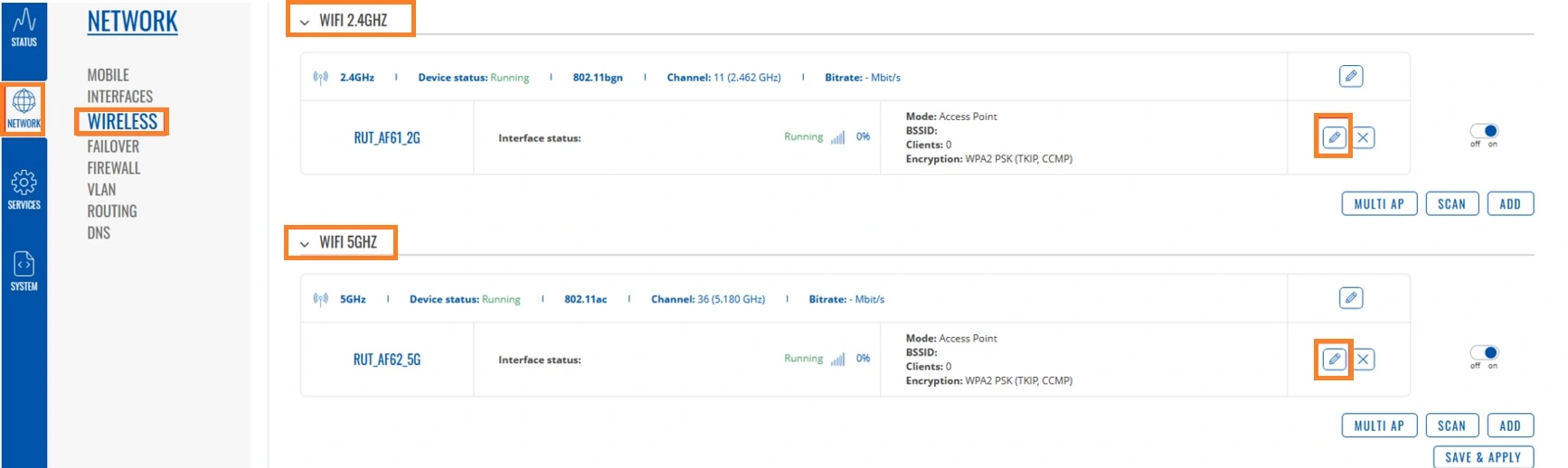 RUT240 Wireless SSID and password change