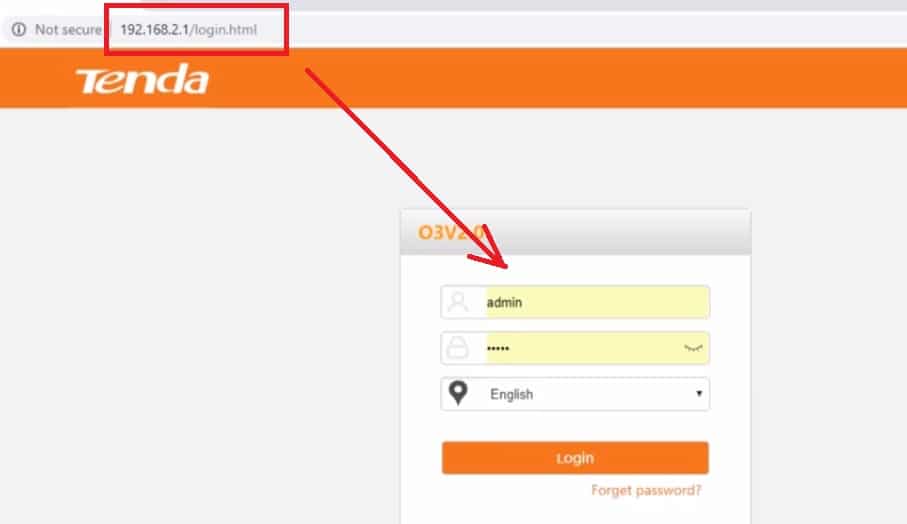 Default Login IP Address Tenda O3 is 192.168.2.1