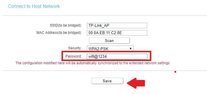 Provide host AP wifi password to allow connection from the TP-link repeater device.