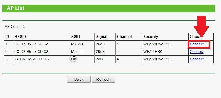 Select Universal repeater and press Survey button are run scanning for networks running nearby.