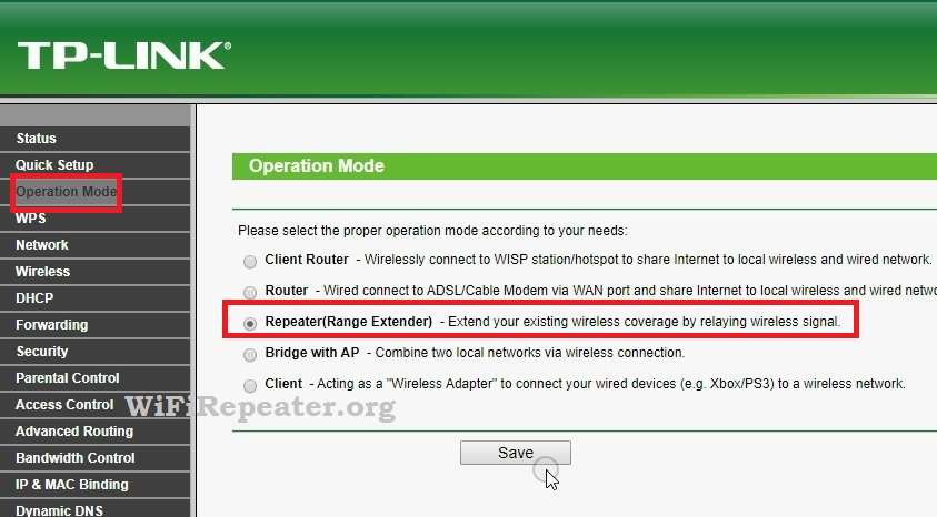 Go to Operation Mode- Repeater (Range Extender) Extend your existing wireless coverage by relaying wireless signals.
