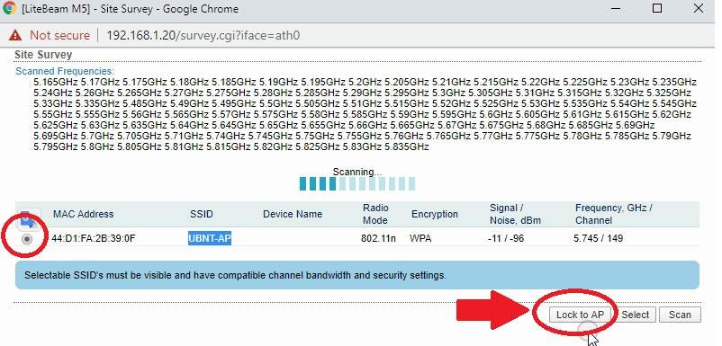 Press the lock to AP button to connect the same AP from lite beam CPE.