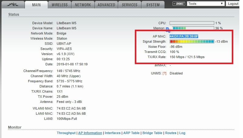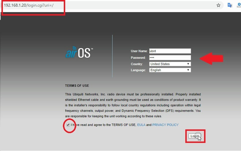 Login UBNT Lite beam from PC