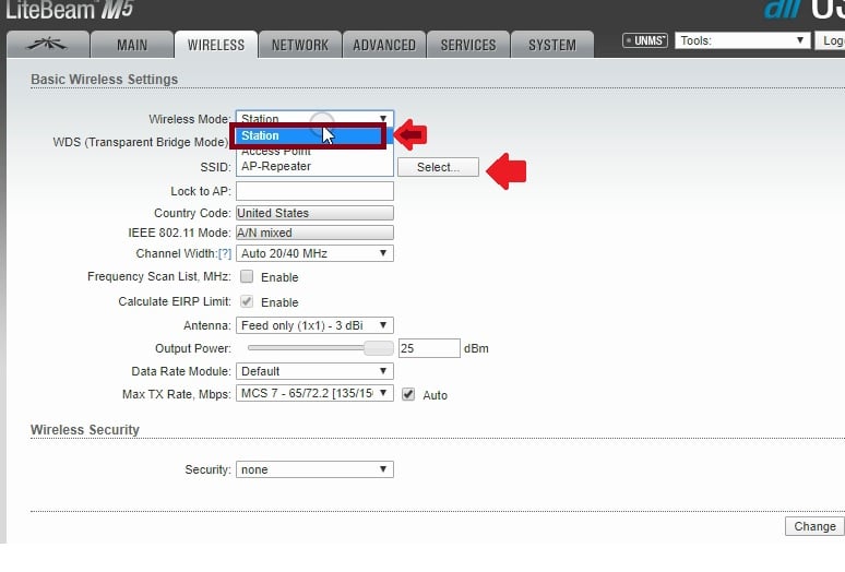 UBNT Lite Beam Station Mode configuration for ISP