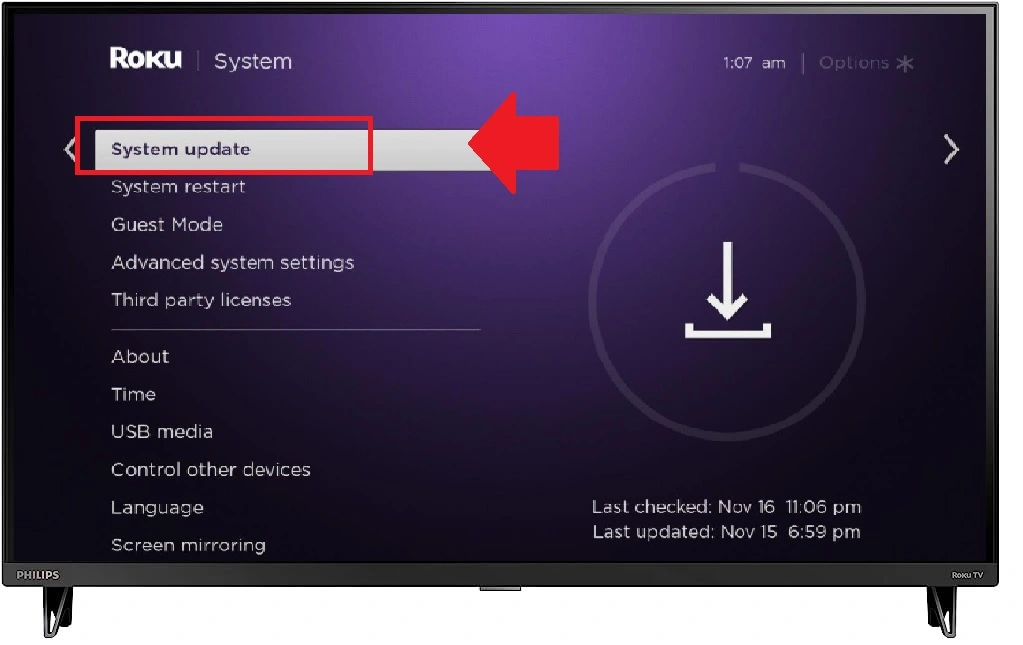 Update firmware and After restarting the TV check if the problem fixed. If upgrading firmware does not fix Roku Turn off issue then follow the next troubleshooting steps.